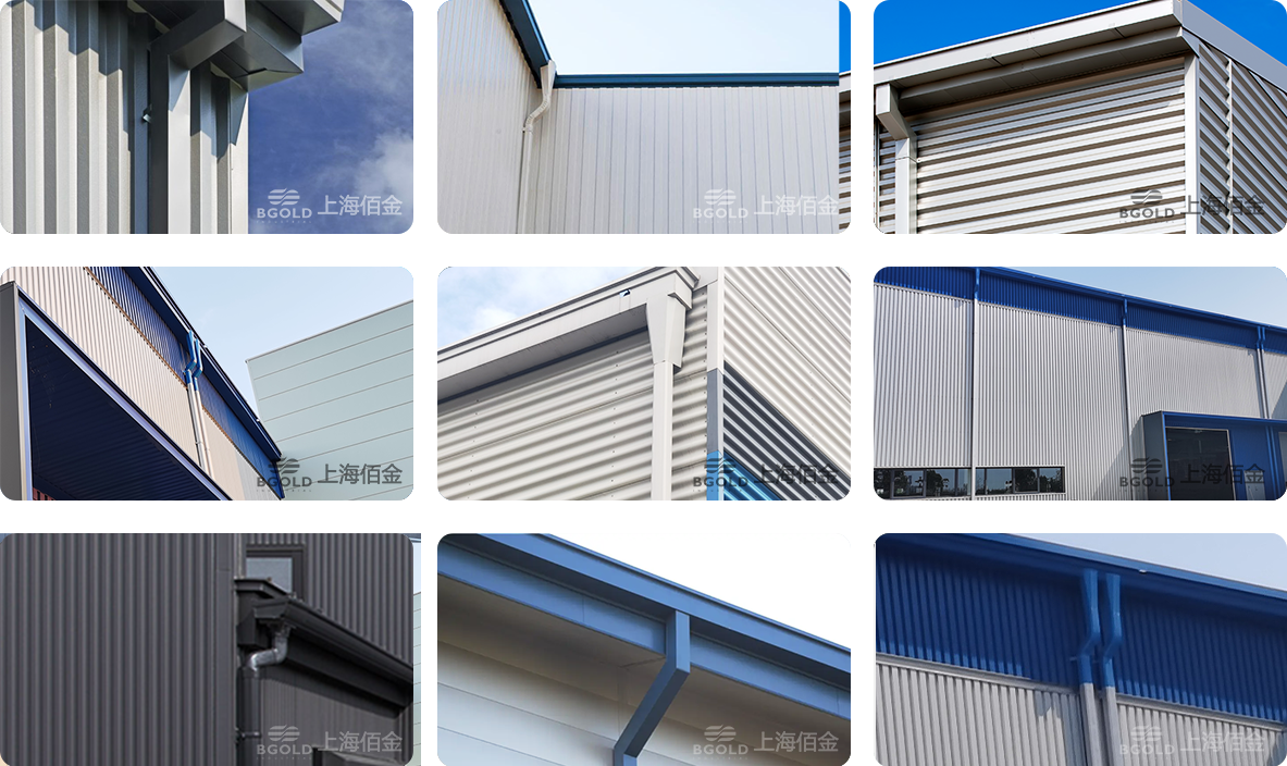 天溝和落水管的材質(zhì),都選用與屋墻面相同的材質(zhì)保證其壽命的一致性;